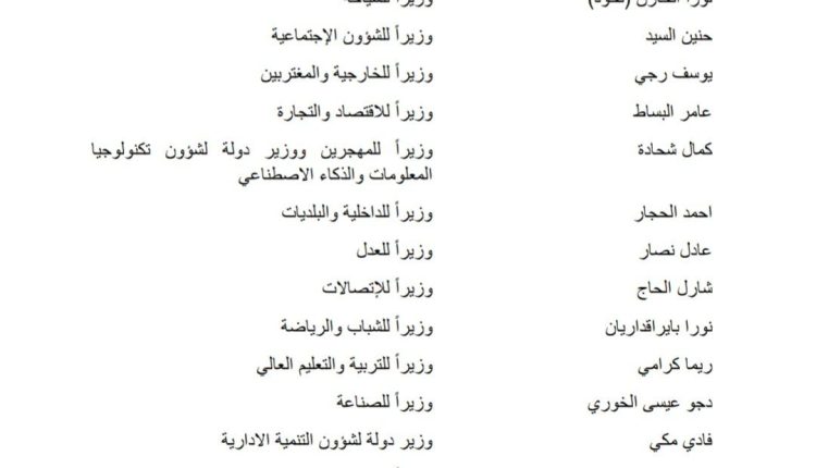 دعوة الحكومة الجديدة الى أول جلسة الثلاثاء ١١ شباط يسبقها التقاط الصورة التذكارية